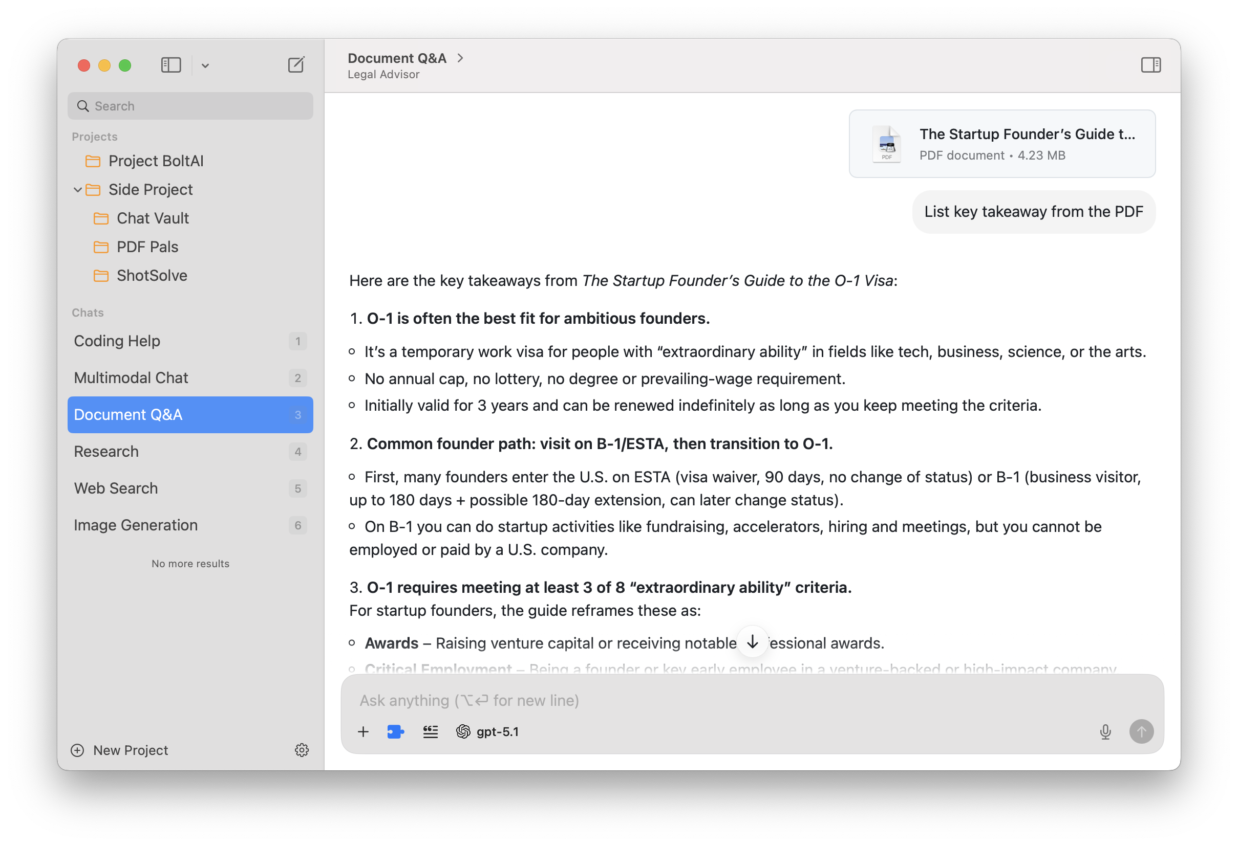 - Work with screenshots, PDFs, and documents. BoltAI extracts structure, summarizes, and explains.