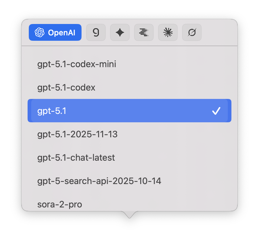 - Use OpenAI, Anthropic, Google, Mistral, Azure, Bedrock, and local models in one unified workspace. Switch instantly without touching another app or browser tab.